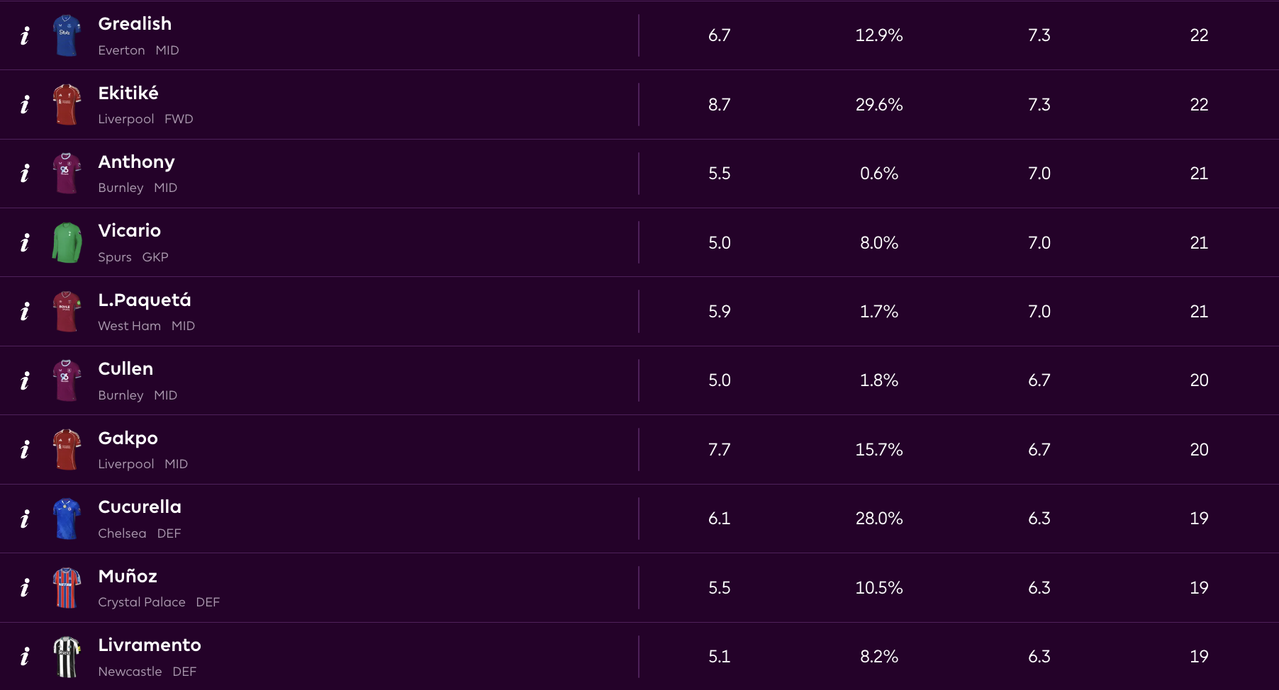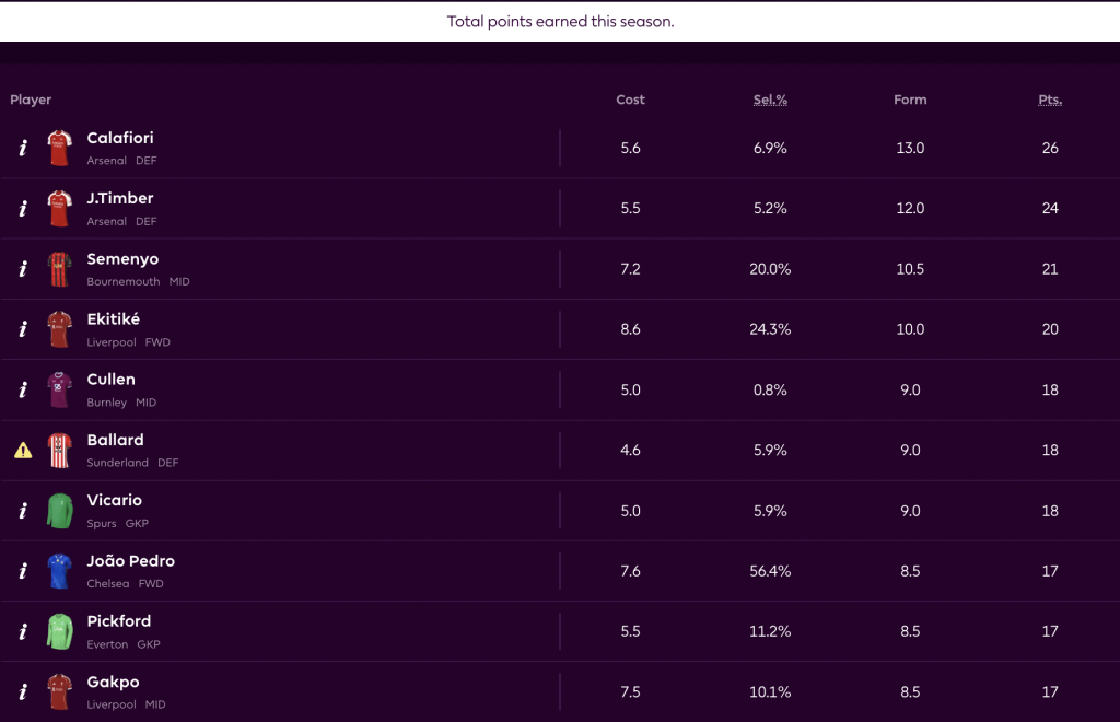 Haftanın Puan Ortalaması: 46,5 (FPL Ortalaması: 48)
