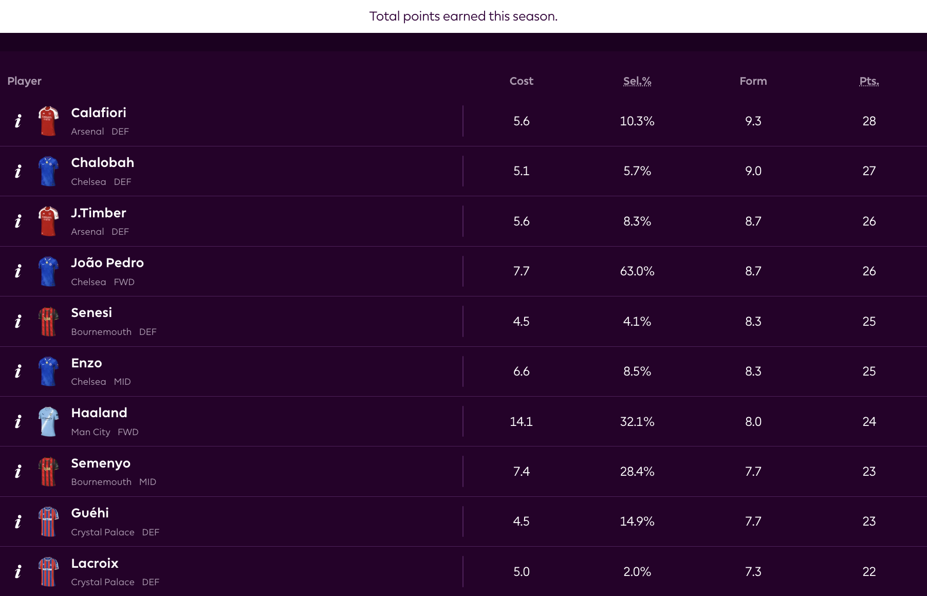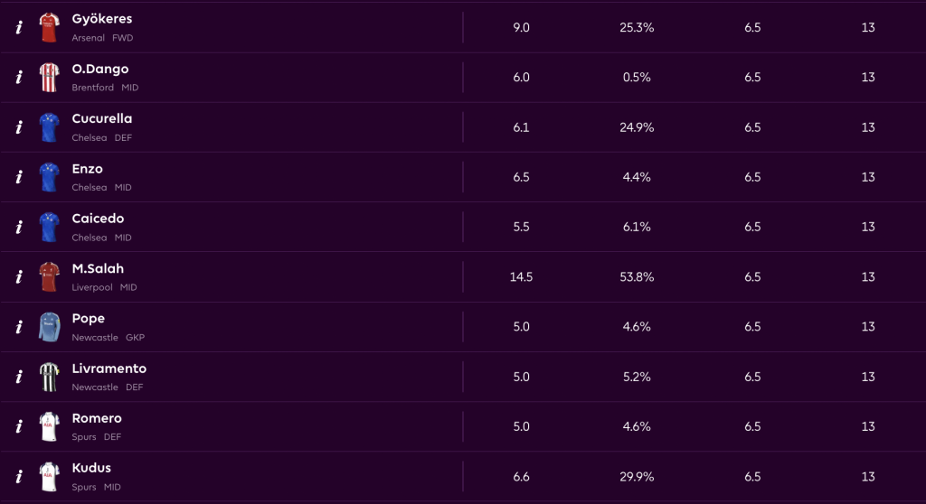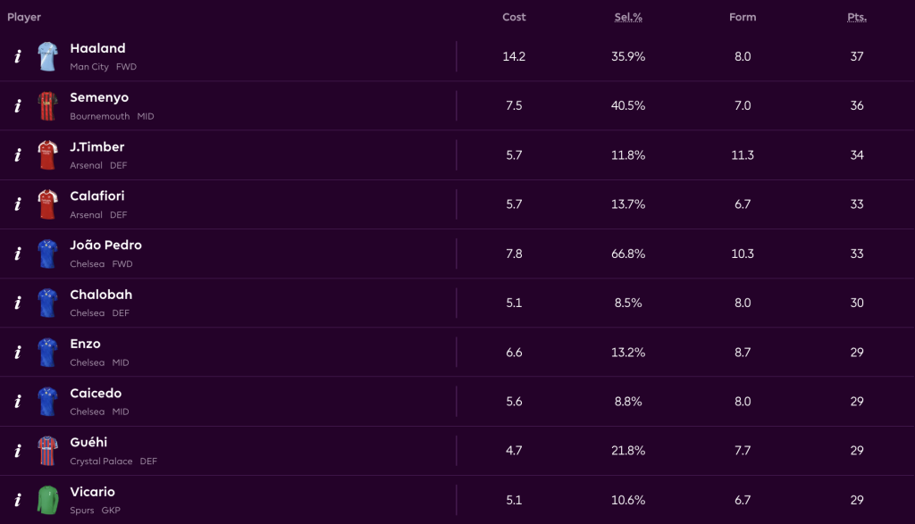 Haftanın Puan Ortalaması: 48,95 (FPL Ortalaması: 51)